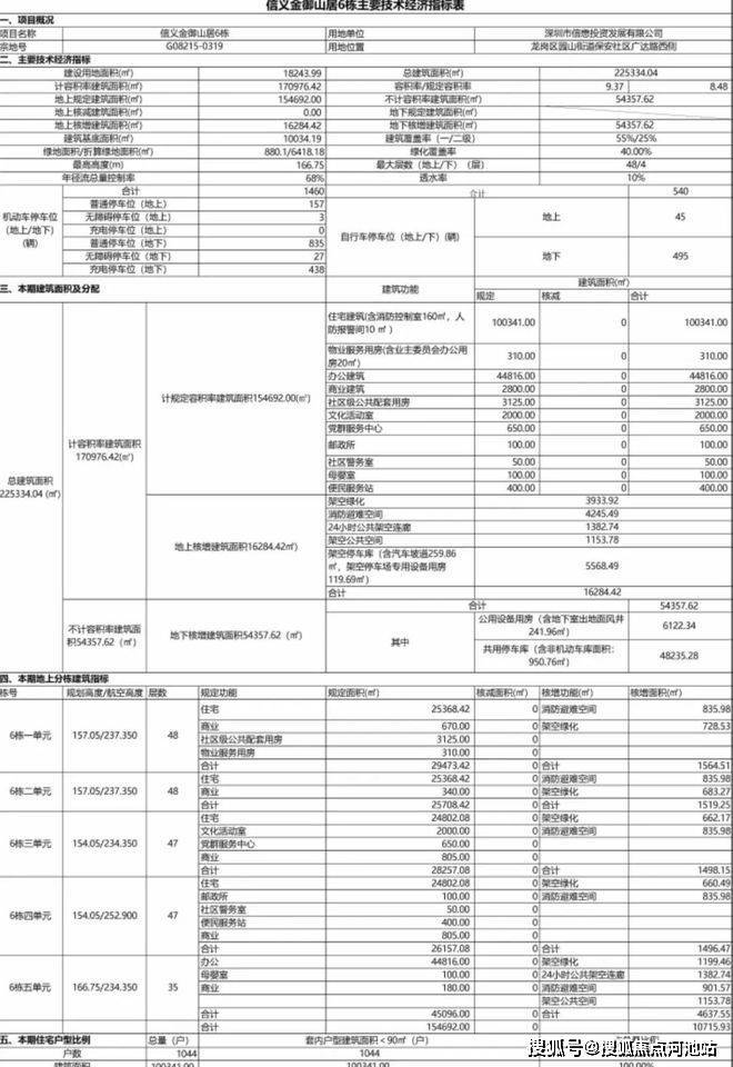 本次信义金御山居开盘推售的是05地块,占地面积为1.82万㎡,总建面约17.9万㎡,容积率为8.48,绿化超过40%,推出4栋超高层项目(47-48层),还有1栋35层的办公写字楼共5栋楼组成!该地块相比03地块最大问题就是楼间距问题,距离03-04-06地块大概30-50米左右楼间距!前面又是天铁,会有一定地铁噪音问题!设计3梯6户,停车位1460个,规划1044户!