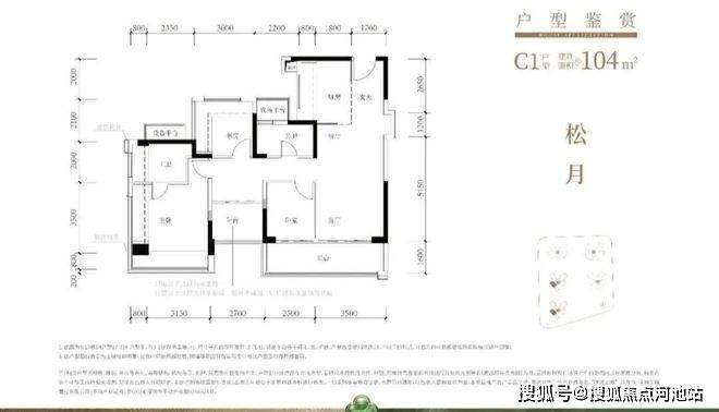 104㎡的4房2厅2卫,C1-C2户型,设计的是经典竖厅格局,进门入户玄关,客厅3.5米开间,LDKB一体化,S墙设计预留冰箱卡槽位,动静分区,四开间朝南,分别做到了主卧17.98㎡/次卧8.37㎡/次卧8.1m²/次卧7.75㎡(包含墙体飘窗),L型厨房,公卫干湿分离带1个约2m²的设备平台,得房率约79.2%(不含赠送),客厅连接次卧出9.6m²的观景大阳台,东南或西南朝向。套内面积82.58m²+赠送面积23.86m²=实用面积106.44m²,加上赠送后得房率约102.04%。