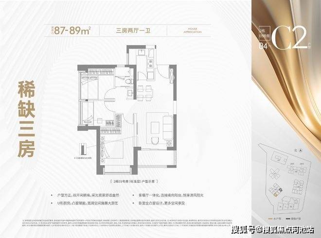 87-89㎡(三房一卫)稀缺精致3房户型,家庭生活一步到位!
