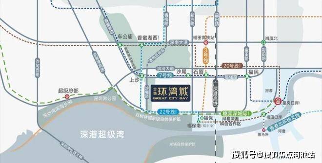 项目无缝衔接串联7号线上沙站-沙尾站,22号线双地铁上沙站 (规划中,双线交汇),1站直达香蜜湖/河套/车公庙。