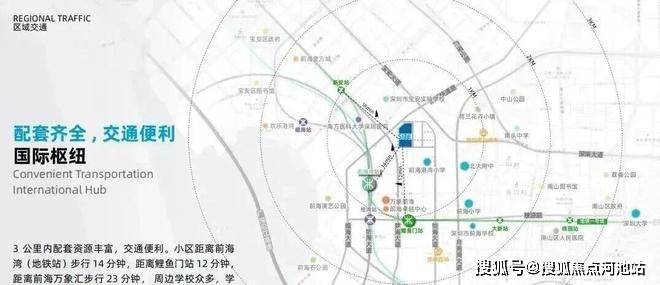 项目距离约1号线、5号线、11号线三线交汇的前海湾站约760米,约800米可到1号线新安站;未来依托在建的深铁前海国际枢纽中心,将汇聚地铁、城际、口岸等多种交通方式,实现南山福田及大湾区核心城市的快速通勤。