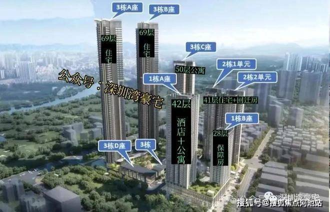 总栋数:8栋(1A栋42层酒店+公寓、1B栋28层保障房,2栋1/2单元41层住宅,3A/3B栋69层住宅;3C栋50层公寓、3D栋4层公寓)