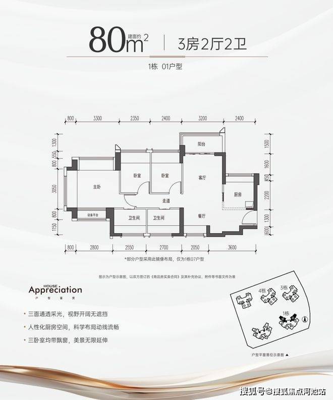 【建筑面积80㎡3房2卫】