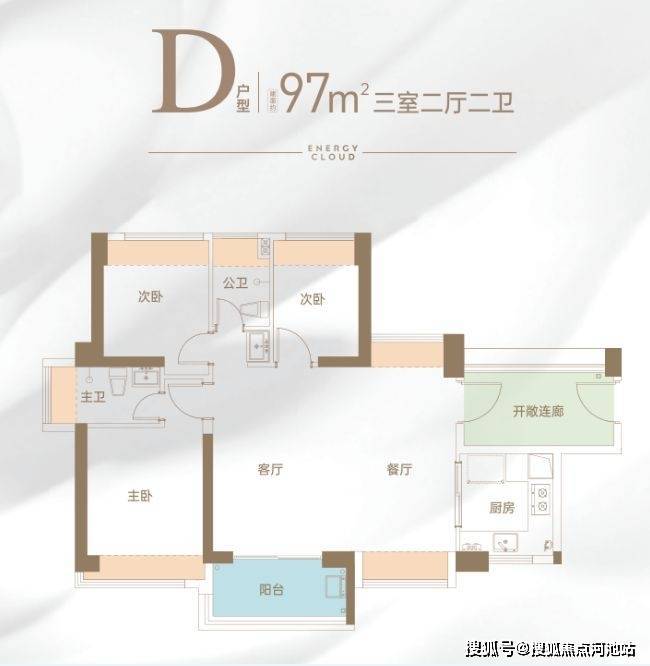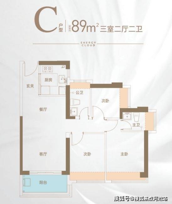 84㎡三房户型,格局跟89㎡的差不多,但跟市场上产品比,同等面积做到了少有的2卫。