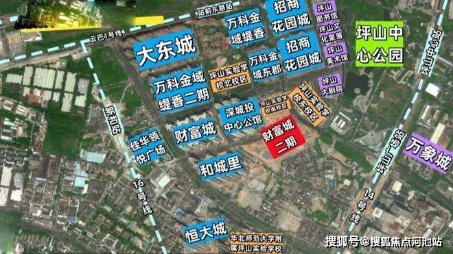 2.财富城2期,买房3件套(地铁+学校+商业)全占了,并且都是坪山区域最顶尖的配套,坪山实验学校+14/16号地铁线/高铁线汇聚+万象城商业/天虹购物中心。