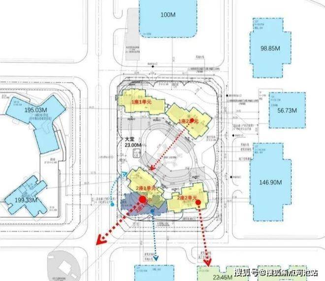在楼栋布局上,项目由两栋22层纯板楼组成,分为4个单元,均采用一层两户设计,专梯专户且楼栋出入口独立,仪式感和隐私感满满。