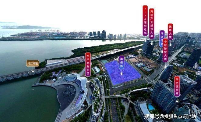 南街坊地块位于宝安中心区,紧邻沿江高速,坐拥湾区书城、湾区之光摩天轮、青少年宫、图书馆、滨海演艺中心、欢乐剧场等市级文化地标,与腾讯全球总部企鹅岛仅一水之隔。