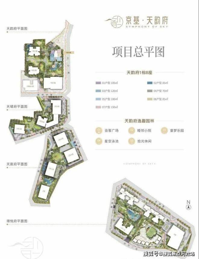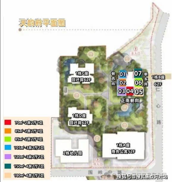 建筑面积:70-85㎡的2房1卫,105㎡的3房2卫,120-150-180㎡的4房2卫户型