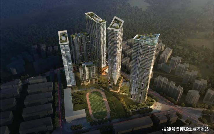 由四栋高低错落的新现代建筑组合而成,占地面积约2万平米,计容地上建筑面积16.59万平米,主力户型建筑面积约70-236平米的2至6房。