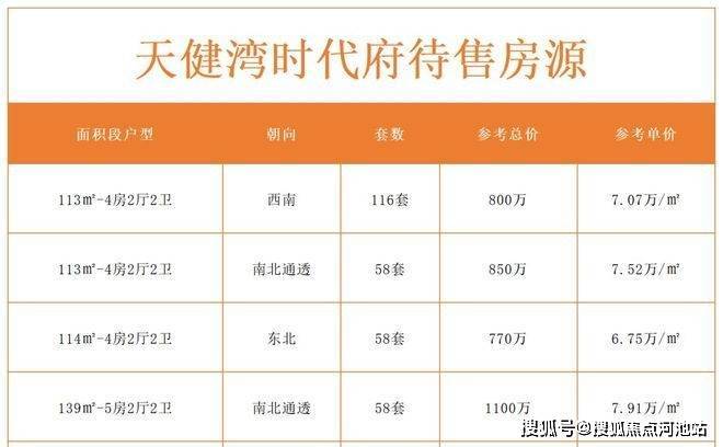 天健湾时代府113㎡4房预计750-850万,139㎡5房预计900-1100万。