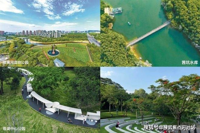 生态公园:观澜河湿地公园、茜坑水库、观湖中心公园、民法公园、九龙山公园等;