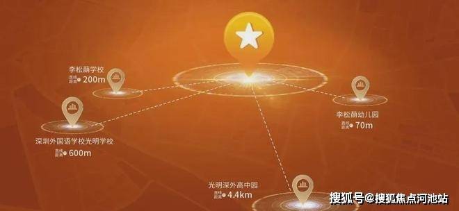 深圳外国语学校光明学校,直线距离约600米,由光明区委区政府重点打造的一所九年一贯制公办学校,委托深圳外国语学校全面管理,办学规模为54班,9月1日新校区落成已开学。