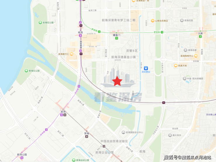 项目位于前海桂湾,地铁1号线鲤鱼门上盖物业。前海时代三期-尊府