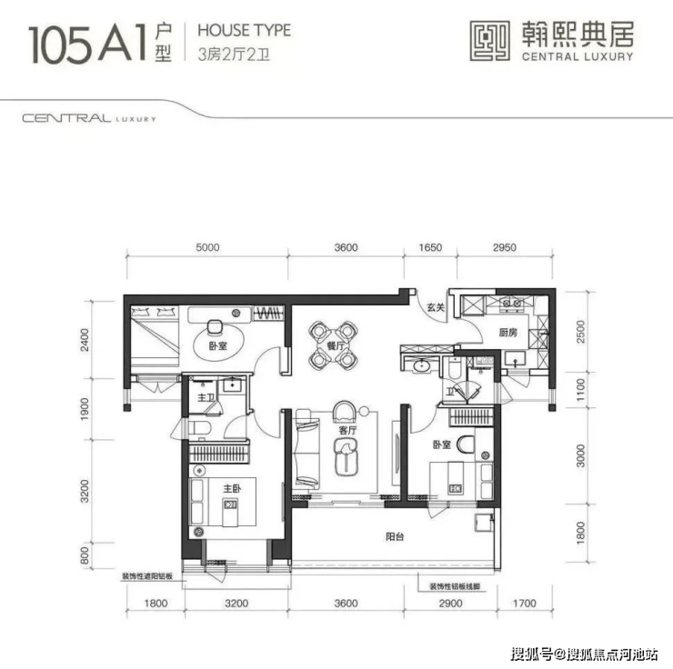 建面约105㎡的3房2厅2卫