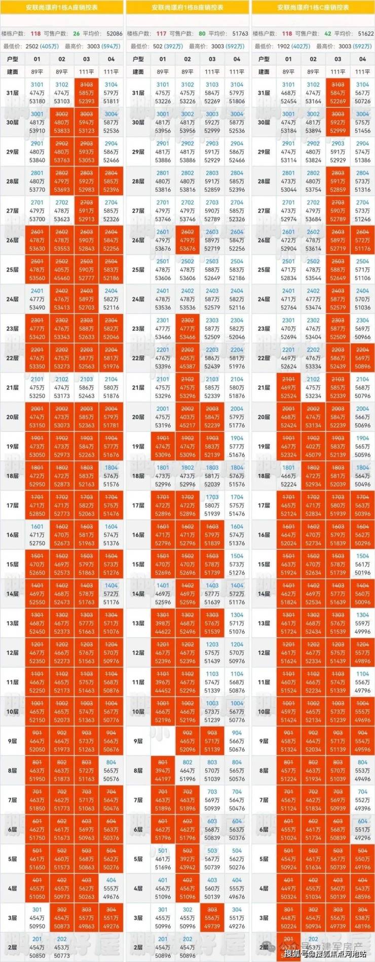 1C-3101 89.3平三房两厅两卫原总价:4684221元 一口价:368.8万