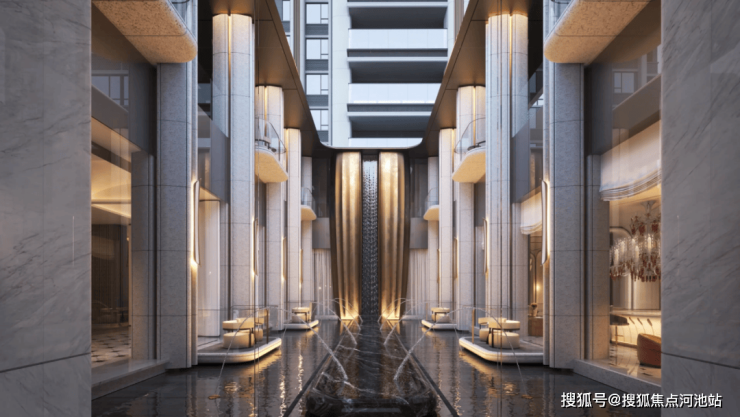 三重归家礼序(从车库、一楼、二楼架空层均设有酒店式大堂,营造更多归家仪式)。