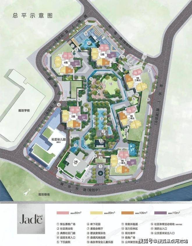 共由7栋48-49层高住宅组成,其中1栋1/2/3单元住宅48F,2栋住宅48F,3/4/5栋住宅49F,6栋是1所12班制幼儿园(配有幼儿园、花园、泳池、儿童乐园、体育活动场所等)