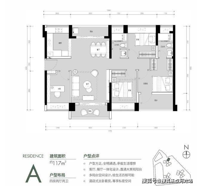 约117㎡户型做到了真四房+全明通透,可满足三代同堂及成长型家庭所需。