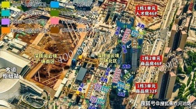 【深铁阅云境】最新消息:最后一栋商品房4单元!面积100-104㎡,全部为三房户型,总高46层,3梯6户,246户,已开放开放实体样板房!