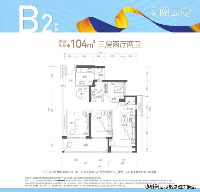 【建筑面积104㎡3房2卫】