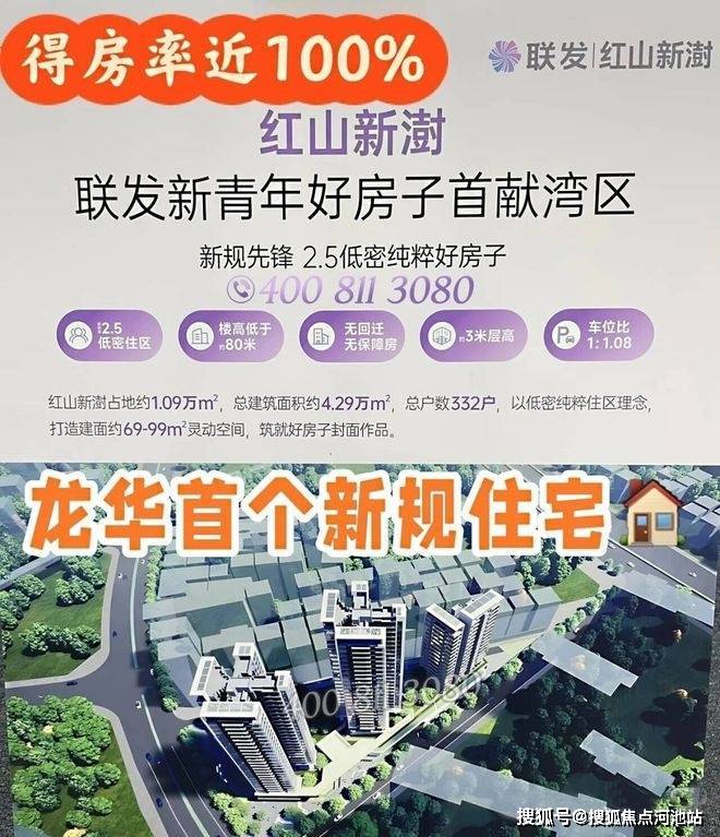 深圳龙华红山新楼盘——联发新澍雅居,将在2026年一季度末取证并开盘入市,推出的住宅面积有69平米的2+1房1卫,79-82平米的3房2卫,99平米的4房2卫户型,共332套房源,户户朝南,总高只有16-25层。