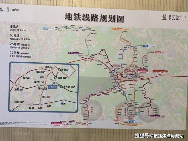 地铁配套:城建云宸汇目前距离最近的10号地铁线“雪象站”约900米,规划有27号地铁线“雪象站”距离约300米,25号地铁线“吉华医院站”距离约400米,这2条线路都已经动工,经坂银通道约15分钟可以到达罗湖,25分钟到达福田。