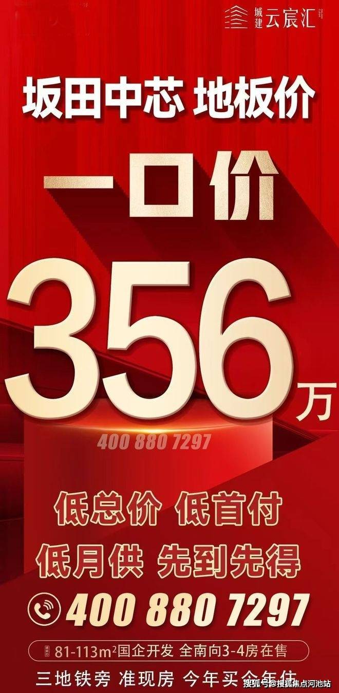 深圳坂田新楼盘——城建云宸汇(备案名:云宸里)已经开盘入市了!目前推出139套房源,面积65㎡的2房1卫,81㎡的4房1卫,87-104㎡的3房2卫,113㎡的4房2卫户型,计划在2025年8月份精装交房。