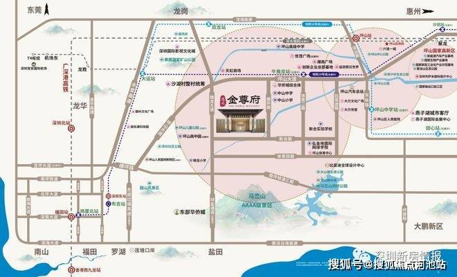 金尊府位于 坪山高铁站的南侧约3.3公里