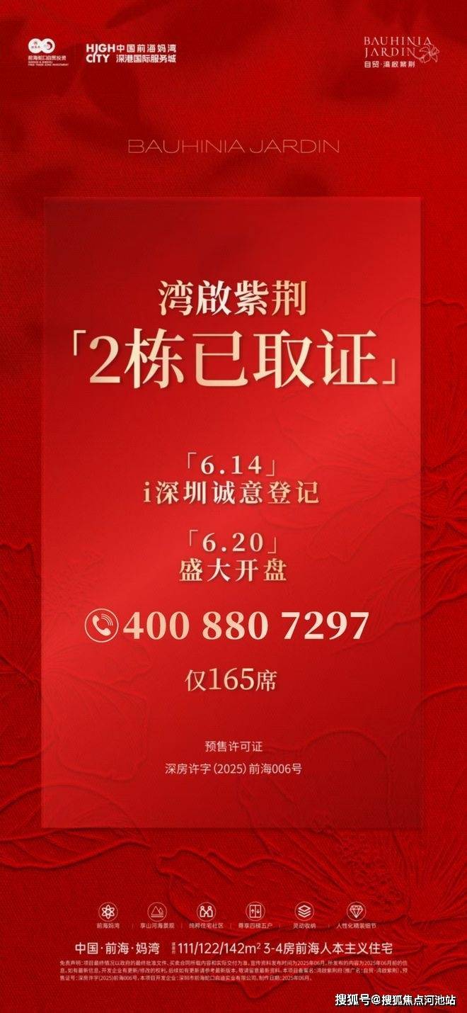 最新消息:深圳前海妈湾楼盘招商领玺四期【湾啟紫荆府】加推的2栋住宅,现已拿证!定于2025年6月14-17日i深圳登记,6月20日开盘选房(详细见下方开盘时间以及流程)。