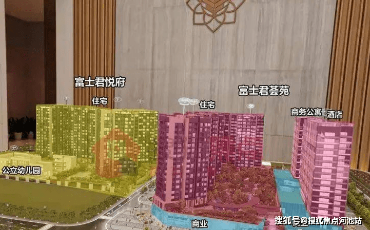 本项目分为两个地块分别是:富士君悦府和富士君荟苑。楼盘目前正常施工中。 用地面积约1.5万㎡,总建面约9万㎡,容积率3.03,二类居住用地,主推住宅产品,社区内规划了一所12班幼儿园。