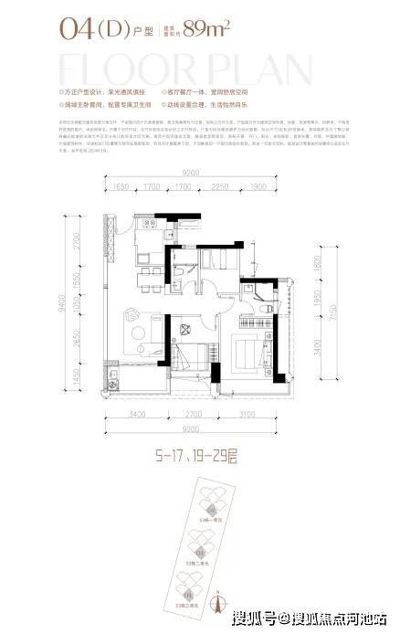 约89㎡3房2厅2卫,户型方正呈竖厅布置,结构上客餐厅一体、动静分区。设计上充分贯彻实用性,约89㎡做到少见的3房2卫,在前海这类改善片区的稀缺性很高。