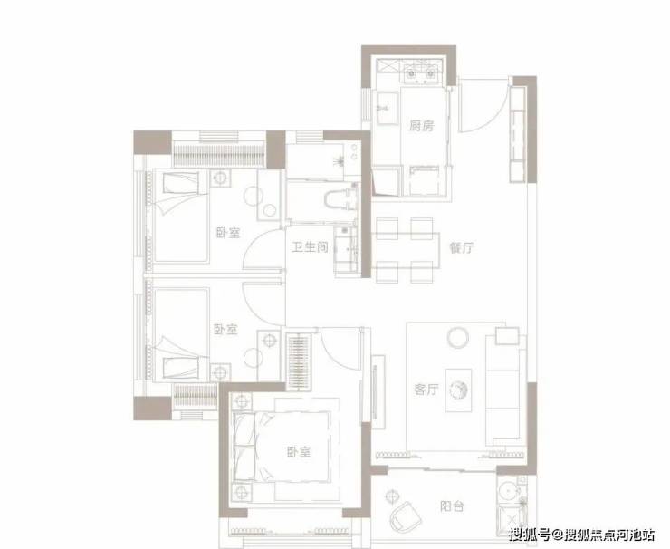 生活更惬意约91㎡三房两卫,三面采光通透格局南向主卧带独立卫生间,起居随心所悦