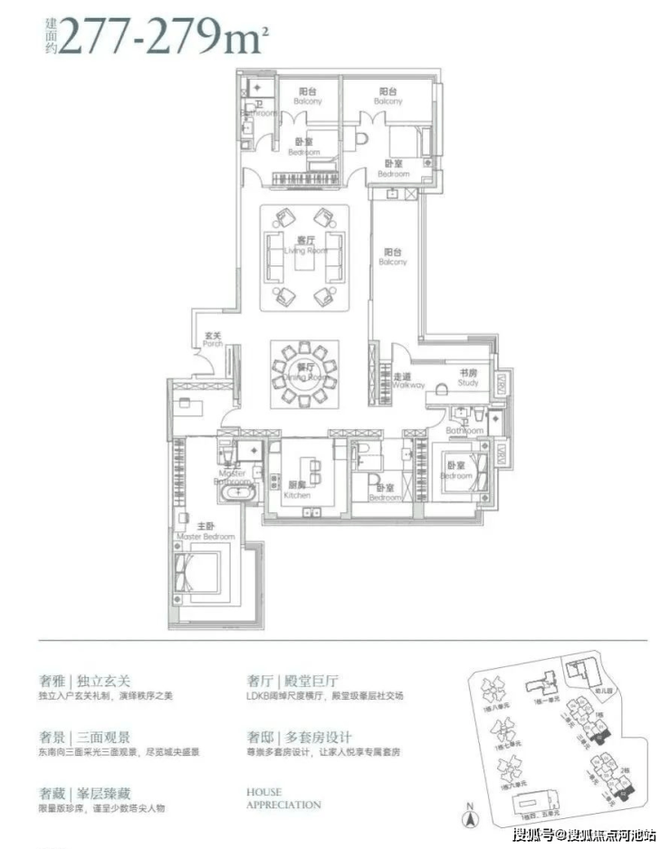 【户型面积】105-124-144-190-220-260-280㎡的3-6房