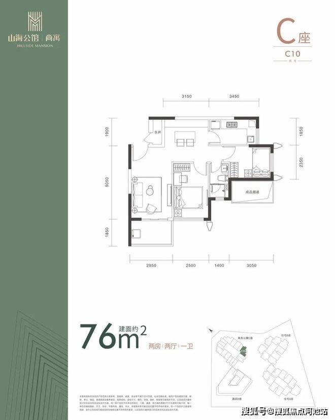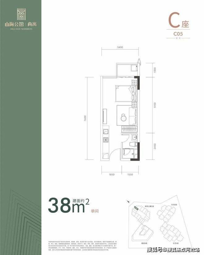 产品信息:约38㎡单间、约57—76㎡1-2房