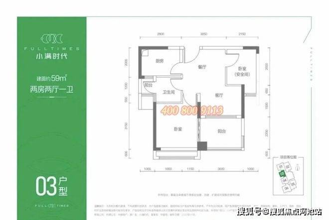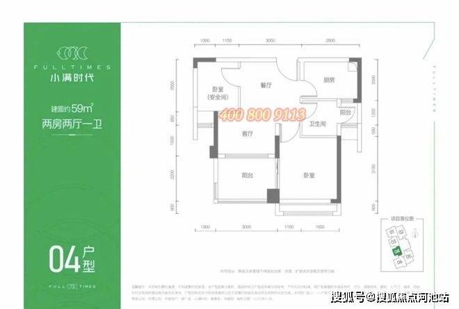 【小满时代】2梯6户,面积段是59、69、74、79平的2房和88平的3房