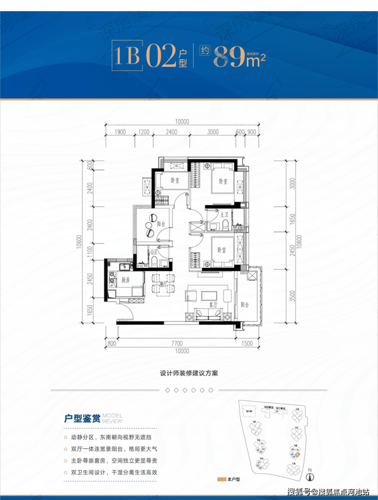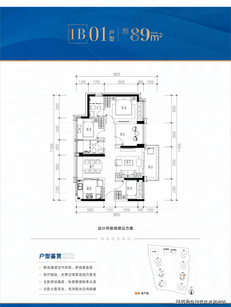 本次推售1栋共874套房源,户型包括81㎡3+1房、89-109㎡4房2卫和135m²5房2卫。