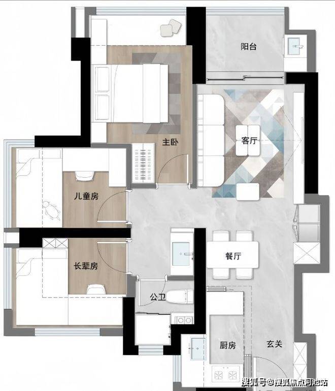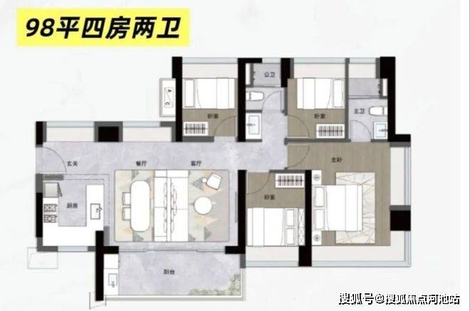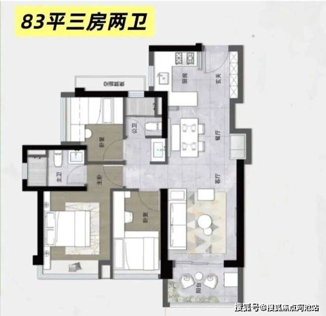 目前流传出来的只有70㎡的3房2厅1卫户型,设计的是竖厅格局,LDKB一体化,S墙设计预留冰箱卡槽位,动静分区,U型厨房,卫生间三段式干湿分离,得房率约100%(包含赠送),西北朝向。