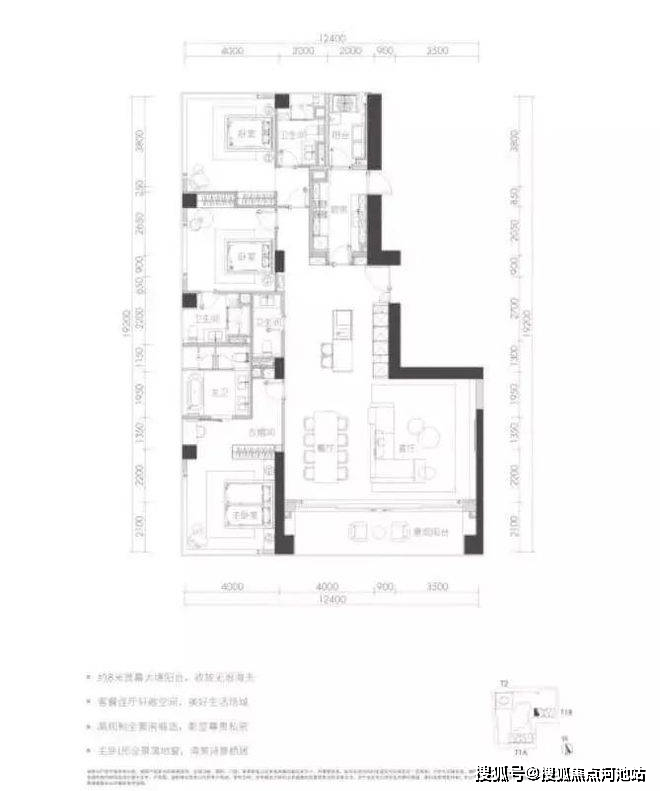 项目将推出的商务公寓均为大户型,有230㎡、260㎡、280㎡、350㎡、400㎡、480㎡等多种,为3-4房。