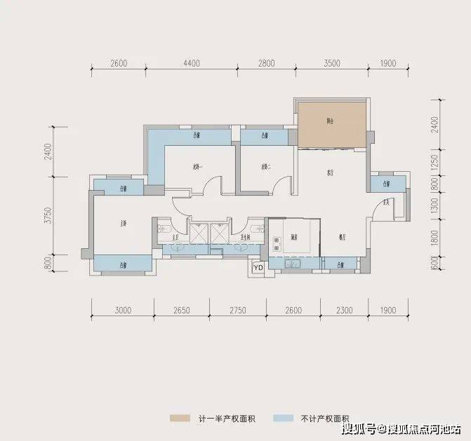 89㎡3房横厅户型使用率,赠送面积达到了22.92㎡,地毯率达到了92.57%,套内加赠送使用率能达到102.58%。