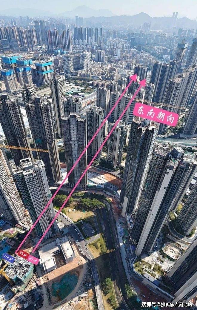 △其中一个89以及98,114三个户型三个户型主阳台东南朝向,可能会被2栋以及前面的深铁珑境遮挡一些视野,好在98户型做的好做到了四房两卫,114呢又是南北通透北面飘窗也能看到阳台山景观。