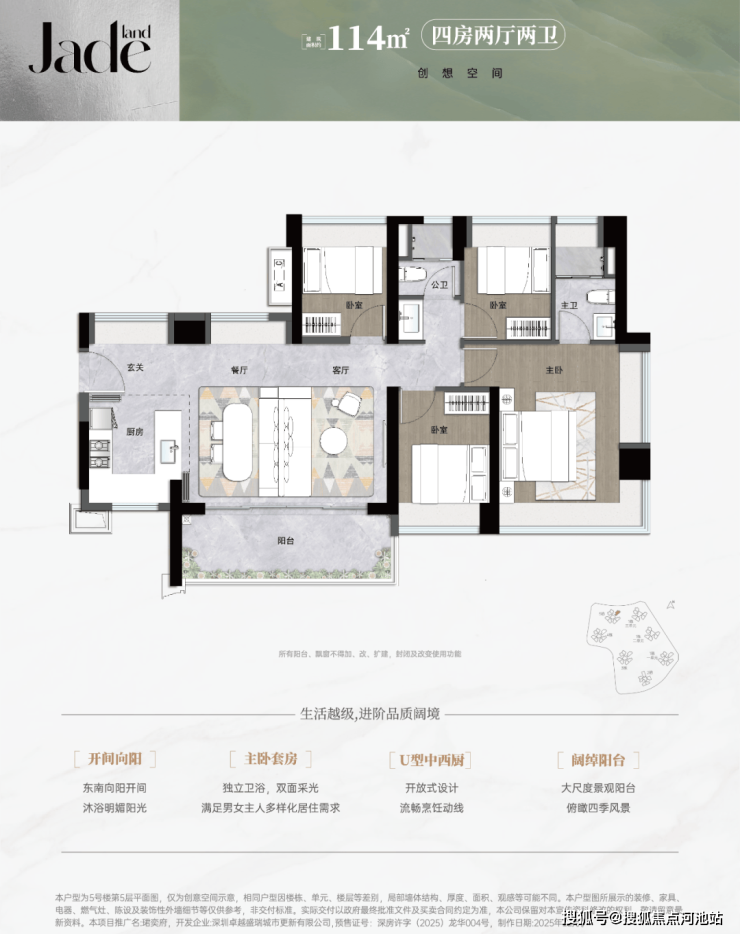 114㎡的4房2厅2卫,折后总价603万起,套均630万,单价5.52万/㎡。