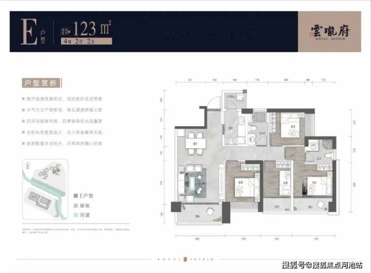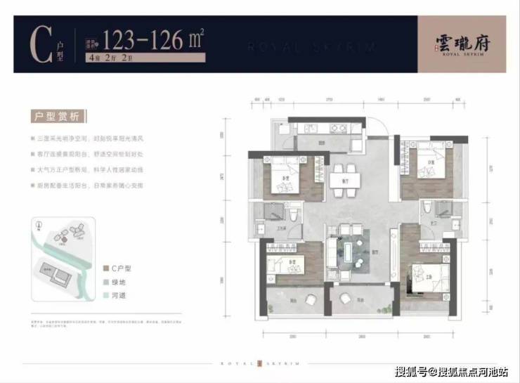 本次推出建面约123-155㎡纯四房,一共有5个住宅户型;