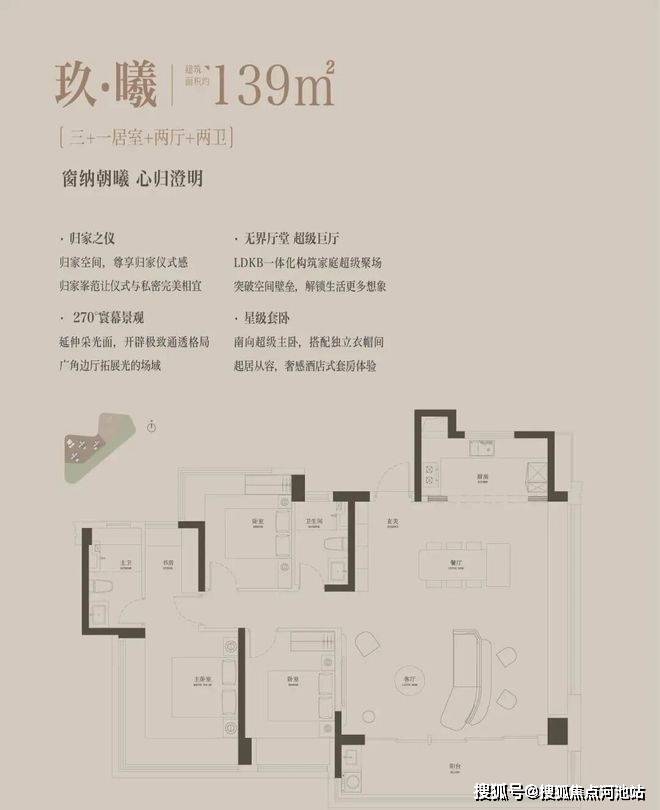 139㎡3+1房两卫,折后总价区间714-828万,单价区间5.13-5.95万/㎡;