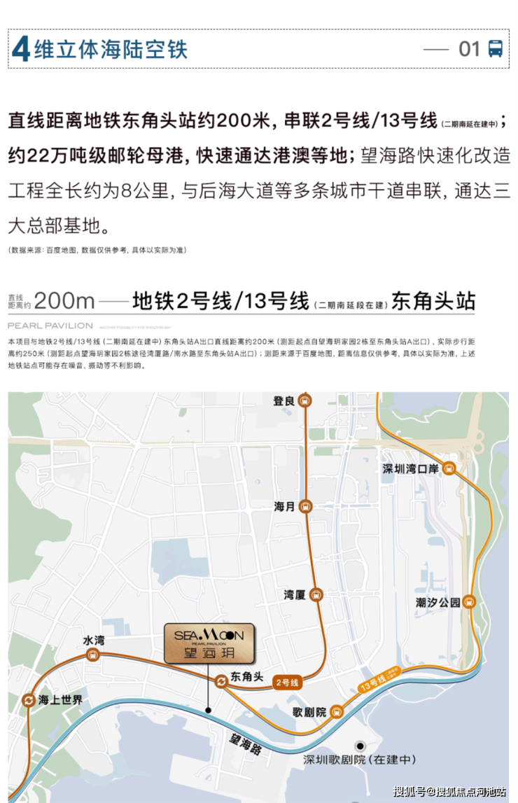 项目一大亮点是真正的“地铁上盖”,距离地铁2号线/8号线东角头站仅约200米。经实测,2站即可到达海上世界,未来13号线(在建)开通后,将能快速直达深圳湾口岸等重要节点,极大提升通勤和出行的便利度。