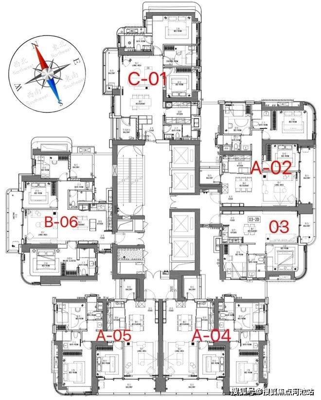 1-2单元为总高60层的商品住宅楼,4梯6户;