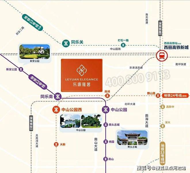 12号线同乐南站(直线约500m),1站中山公园,2站到西丽高铁站(在建中),4站到科技园,5站到前海;