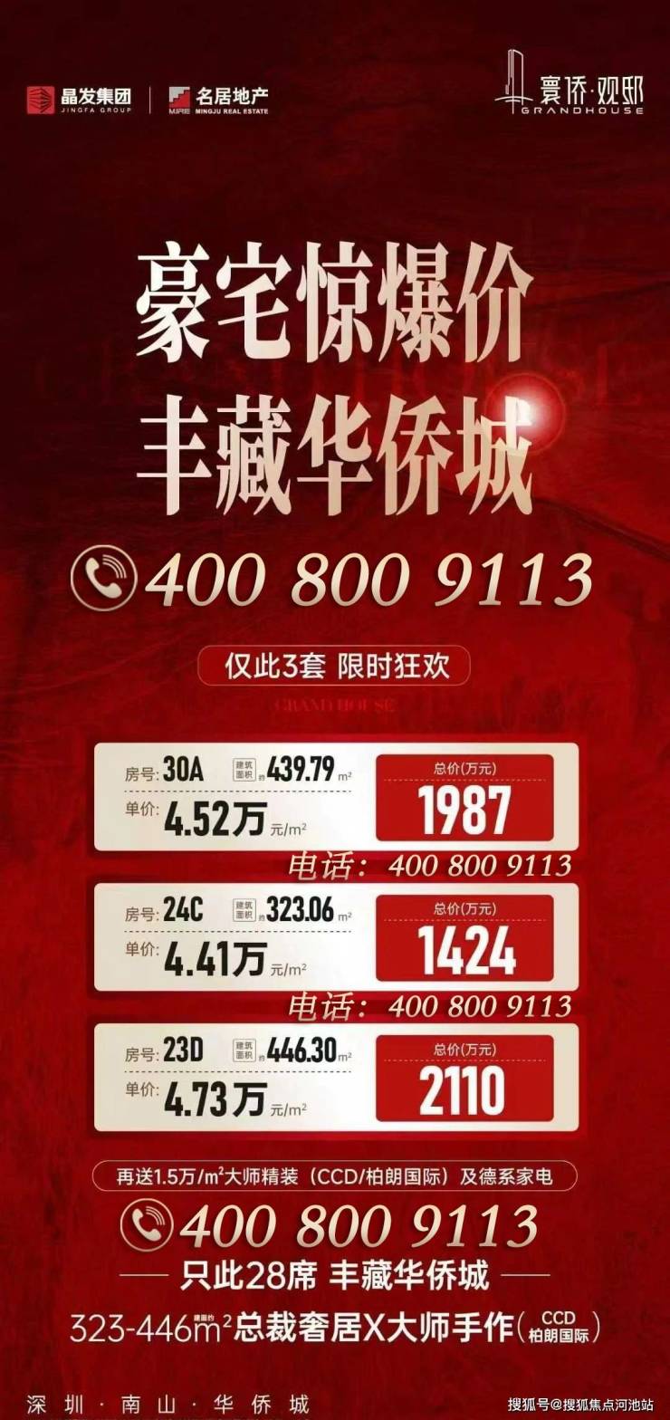看完以上介绍,如需了解更多关于我们深圳南山华侨城寰侨观邸楼盘最新消息、剩余房源以及楼层、这几天房价优惠活动、在卖的户型、限购政策、房贷相关问题等情况,欢迎来电咨询寰侨观邸开发商售楼处全国免费400咨询/预约电话:400-800-9113(已认证)中介请勿扰。