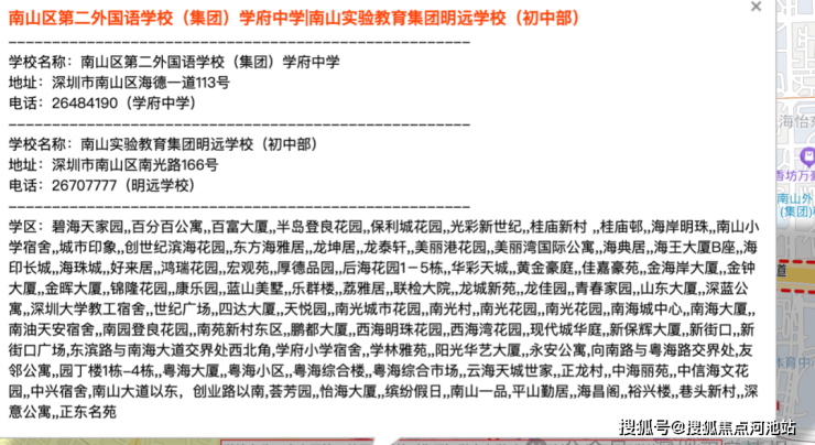 处南二外学府一小和南二外学府中学学区范围内,直线距离500米范围内有省一级学校深圳南山中加学校(学区范围如有变动,以南山区教育局最新颁布政策为准)