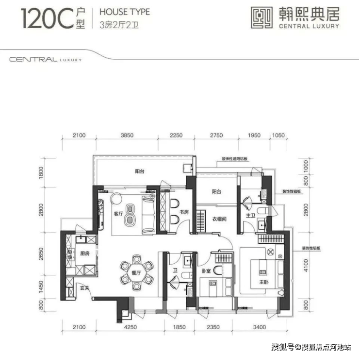 建面约120㎡的3+1房2厅2卫,