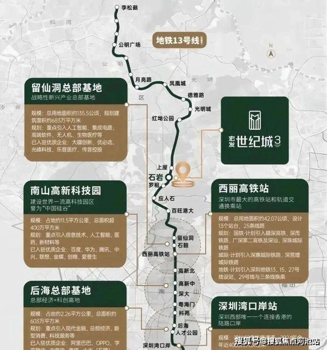 另外规划在建设中的深大城际“石岩中心站”以及13号地铁线“石岩站”距离约1公里,步行约15分钟,3站到西丽百港大,4站到留仙洞总部基地。